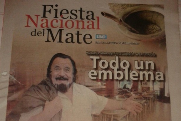 Durante los días 13, 14 y 15 de febrero se realizará una nueva edición de la Fiesta Nacional del Mate y para engalanarla se confirmó la presencia de una leyenda viviente del folclore argentino: Horacio Guarany. Con 89 años será parte de la cartelera del festival y se cree que significará una noche de gran convocatoria, sobre todo de asistentes de otras provincias.